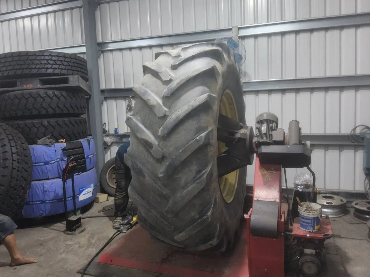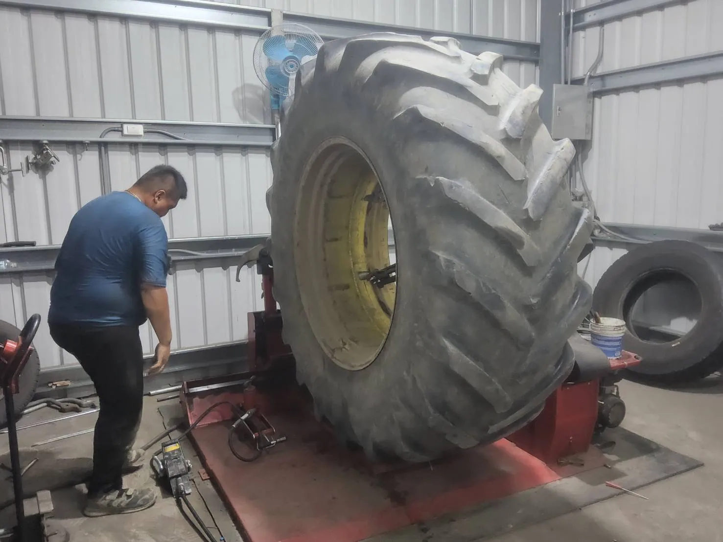 這台機器主要用於…大型輪胎(例如拖拉機、工程車、裝載機等)的拆裝工作。一般大車用拆胎機無法處理這麼大的輪圈與胎體,因此需要這種重型專用設備。